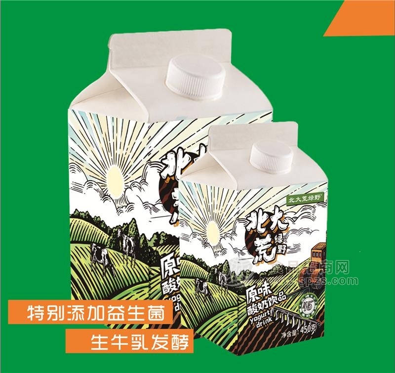 随着Z世代成为主流消费群体,大品牌也在不断年轻化。北大荒绿野酸奶,利用漫画的形式将北大荒的生产画面印在包装盒上,传统与新潮的结合,赋予产品一种另类的时尚,契合年轻人审美。产品采用屋顶盒包装,有300g、450g、928g等多种规格,满足消费者在就餐时的多元化需求。