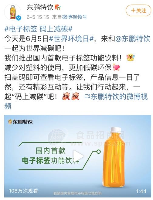 面对饮料旺季,东鹏特饮、健力宝、中石化、旺旺、元气森林等巨头纷纷推新,功能饮料庞大的市场空间仍蕴含着巨大的商机。6月5日,世界环境日,东鹏特饮官方微博宣布,推出国内首款电子标签功能饮料,以瓶盖二维码代替瓶标承载产品信息实现标签数字化,并运用在500ml瓶装这一经典产品上。