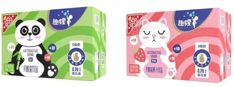 “趣多星乳酸菌饮品”,选用“黄金牧场”新西兰进口脱脂乳粉+进口菌种,优选原产地水果榨汁,0.7g/100ml蛋白质更营养,钙、铁、锌等元素丰富,口感酸甜,奶味十足,0脂肪无负担。