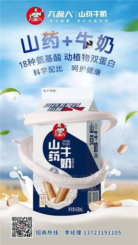 品牌化运作理念,极致产品力产品强劲推广,丰厚利润空间支持不压货、不窜货、一区一代太极人山药牛奶可长线操作的利润爆品