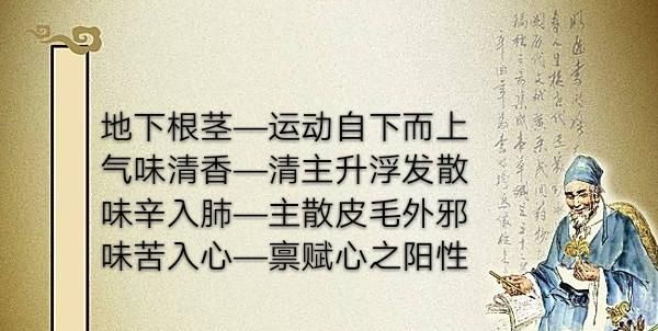 ①气味清香柔和,为气之薄,属阳之阳,可作用于体表上部,升浮发散以驱邪。药性多微寒或微热,例如荆芥,防风,羌活,菊花,陈皮,柴胡。