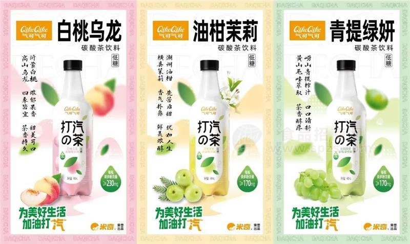 低糖配方既调和了碳酸与茶的酸涩感,又保证了低负担更健康。油柑茉莉、白桃乌龙、青提绿妍三种口味,给予消费者多重选择。