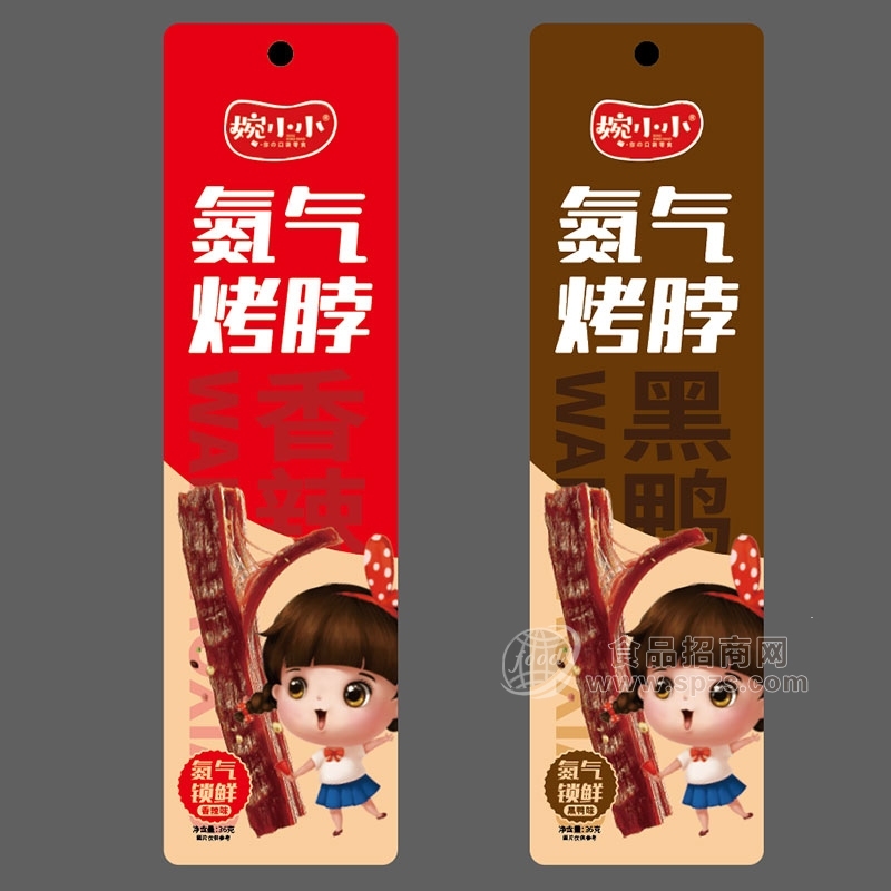婉小小休闲零食,外包装设计,嵌入了一位乖巧可爱的小小姑娘,水汪汪的眼睛,急切品尝美味的表情,都带动消费者“吃零食”的渴望,放到产品架上让人过目不忘,大大提高了终端销售的复购率!