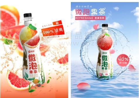 微泡果茶,一半果汁一半茶,口感丰富备受年轻人追捧