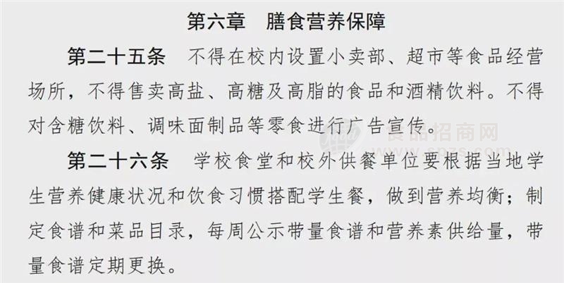 二是食品安全。主要包括学校食堂和校外供餐单位要建立健全食品安全管理制度,学校食堂要实施“明厨亮灶”和分餐制度,建立学校相关负责人陪餐制度和家长陪餐制度等内容。