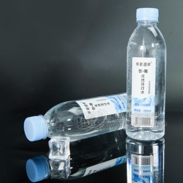 华夏嘉年天然苏打水采用蓝白色调包装,突出产品的天然纯净,大气简约,时尚高端!产品采用399ml规格,夏季饮用更畅快,冰镇过后更过瘾,是深受消费者青睐的品质之选。