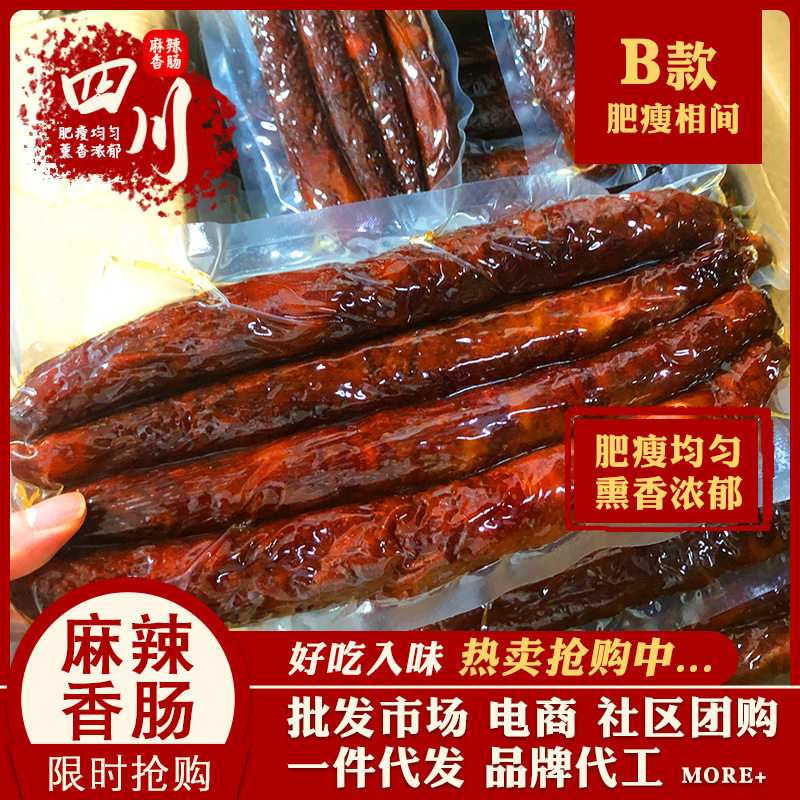 - 麻辣香肠A款瘦肉多腊肠正宗四川特产农家手工自制烟熏五香肠批发