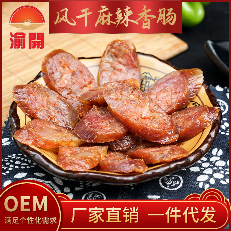 - 散装烟熏麻辣腊肠批发 腌制风干广式麻辣肠 真空袋包装一件代发