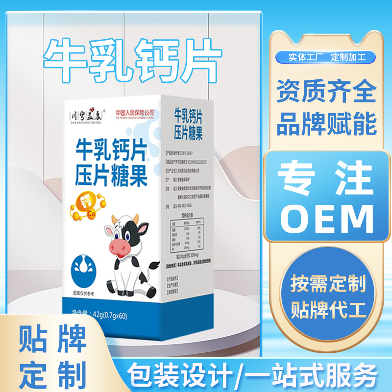 贴牌加工小单定制牛乳钙片压片糖果OEM儿童中老年牛乳钙片