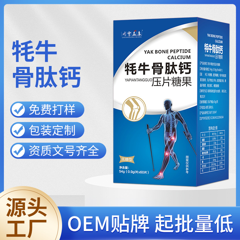 定制加工青少年成人型牦牛骨肽钙压片糖果贴牌代工牦牛骨肽钙oem