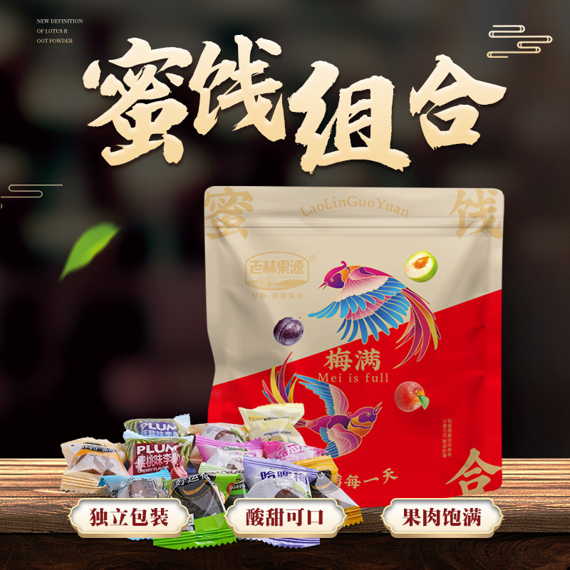 蜜饯果脯蓝莓李果酸甜话梅混合加应子橄榄缤纷彩虹梅酸梅果脯批发