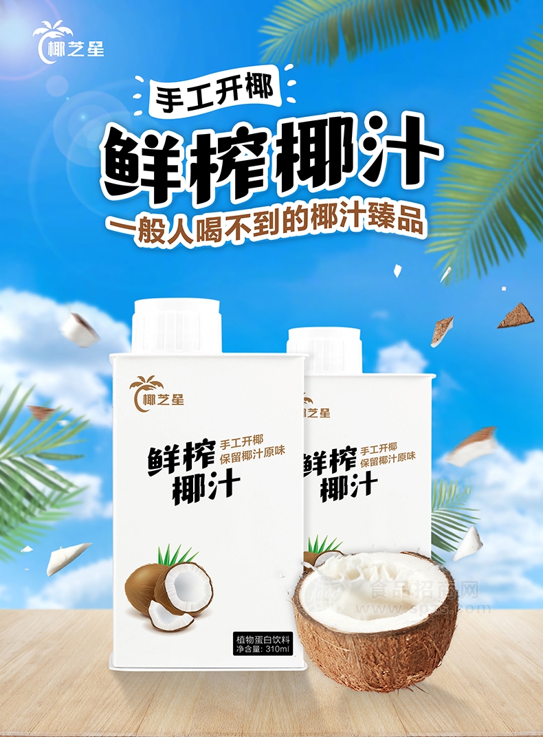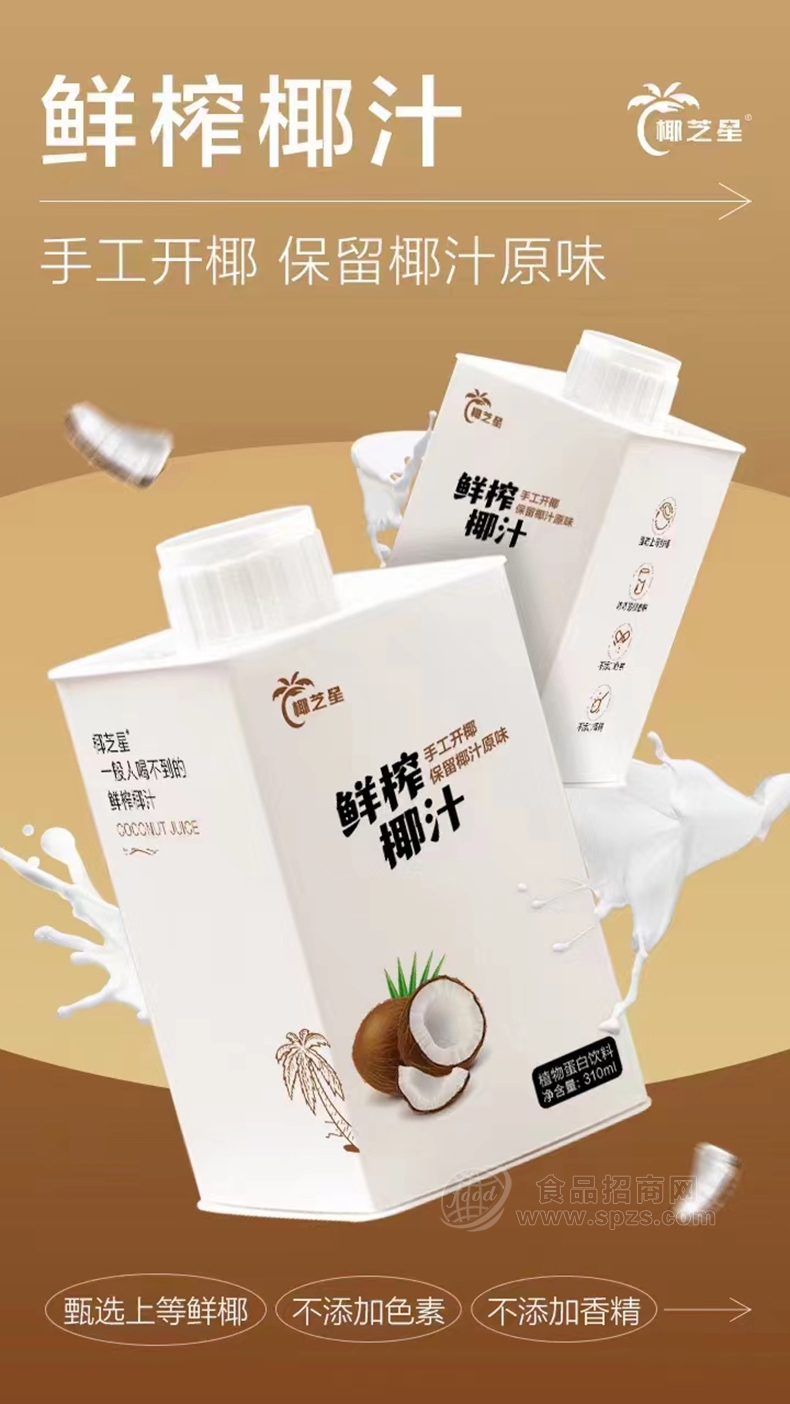 1、椰芝星鲜榨椰汁植物蛋白饮料代理招商310ml经销商必须有经营销售能力。