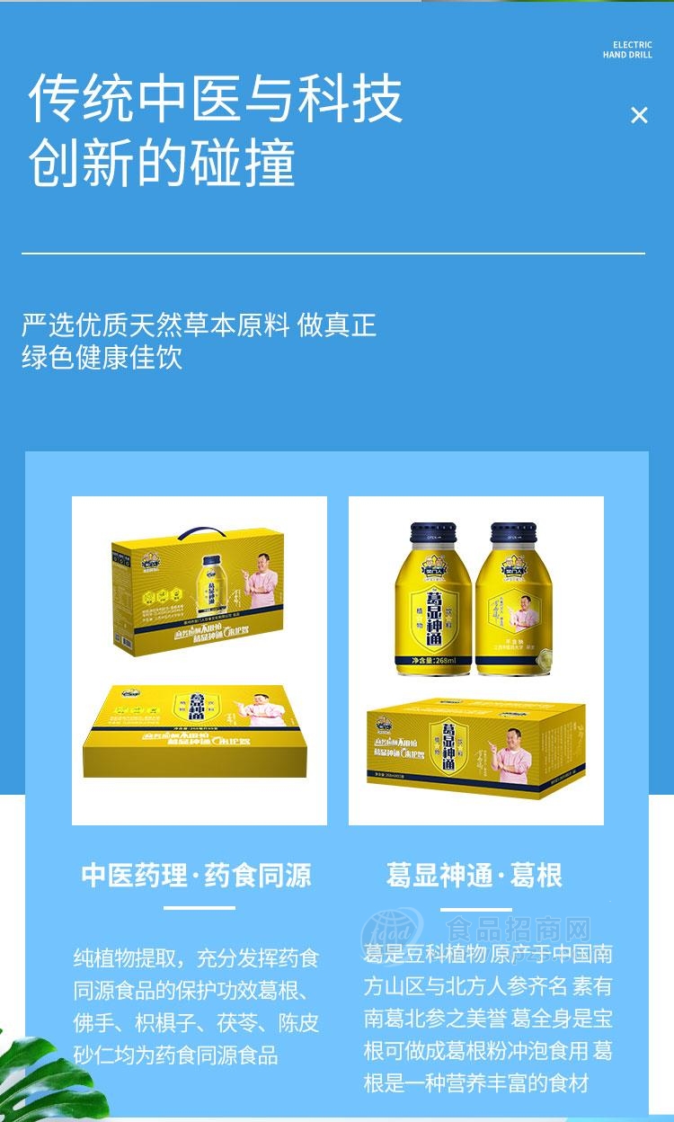奖门人葛显神通植物饮料葛根招商268ml是由惠州市奖门人饮食文化有限公司发布的植物饮料产品,了解奖门人葛显神通植物饮料葛根招商268ml或者有代理或者批发采购奖门人葛显神通植物饮料葛根招商268ml均可与厂家联系,沟通洽谈。相关的专题推荐:葛根,火锅食材,预制菜,鱼子酱,蚝油。