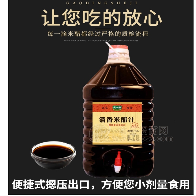 美一膳 清香米醋汁 17.9L/桶17.9L/桶是由山东巧妻食品科技有限公司生产的,是醋知名品牌,山东巧妻食品科技有限公司采用国内外先进的工艺加工技术,并经专家精心调制生产;美一膳 清香米醋汁 17.9L/桶17.9L/桶营养丰富,并能增加菜肴色泽及香味,风味口感更佳。现面向全国各地诚招代理商。相关的专题推荐:米醋,香米醋,香米,米,火锅食材。