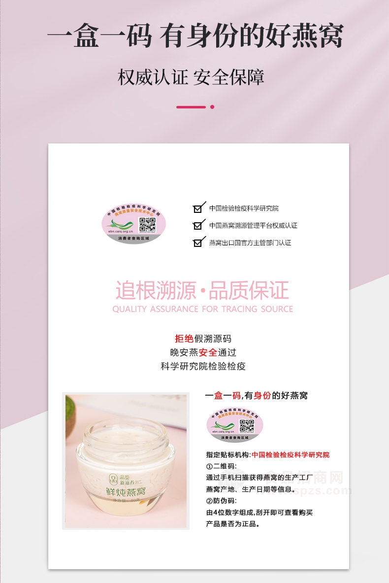 品鉴燕窝代加工工厂为燕窝品牌定制提供一站式的oem代工服务,可根据客户的需求提供多项方案,同时,提供免费打样、免费包材设计、免费仓储物流等多项免费服务,欢迎需要燕窝代加工的您联系或我们或者在留言板留言!