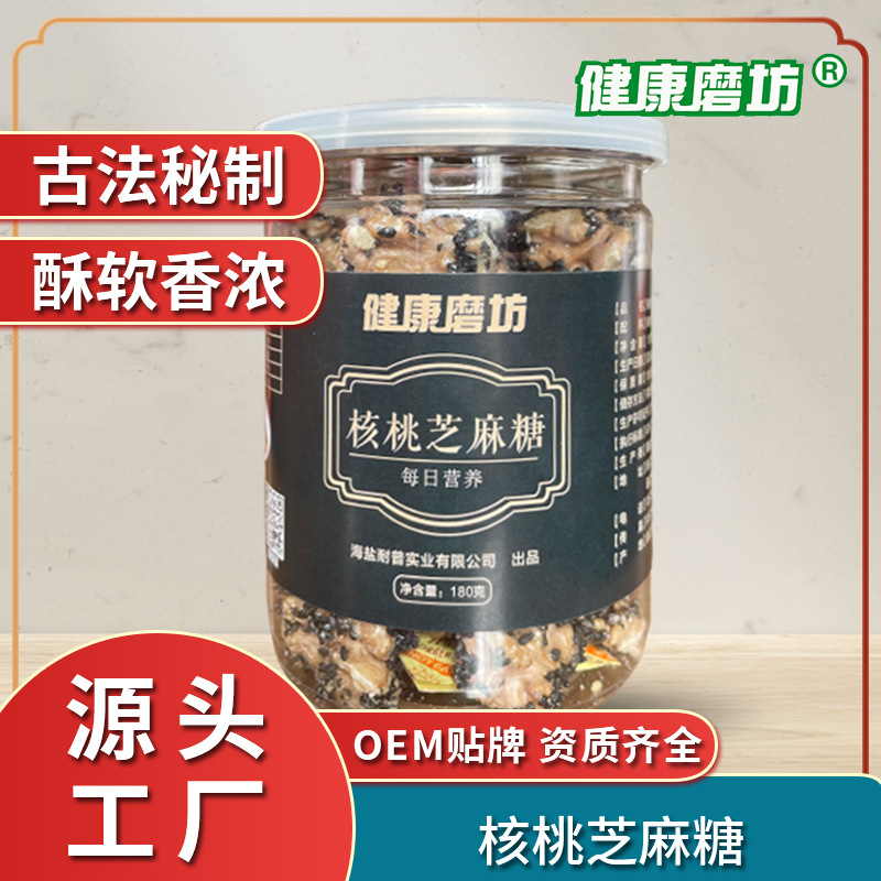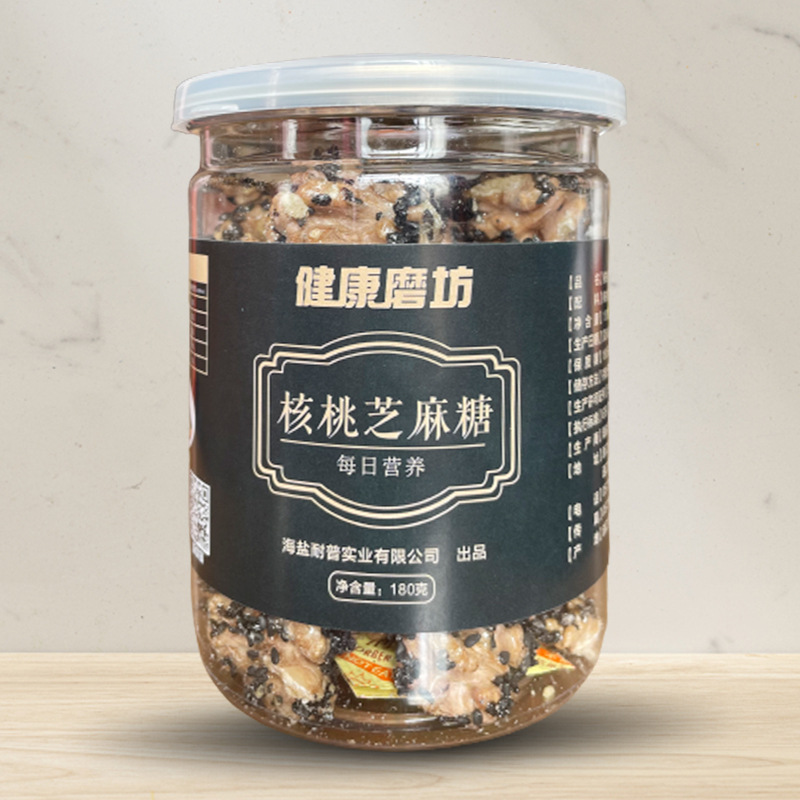芝麻核桃仁2021新货小吃180g罐装去皮干果熟即食零食核桃芝麻糖