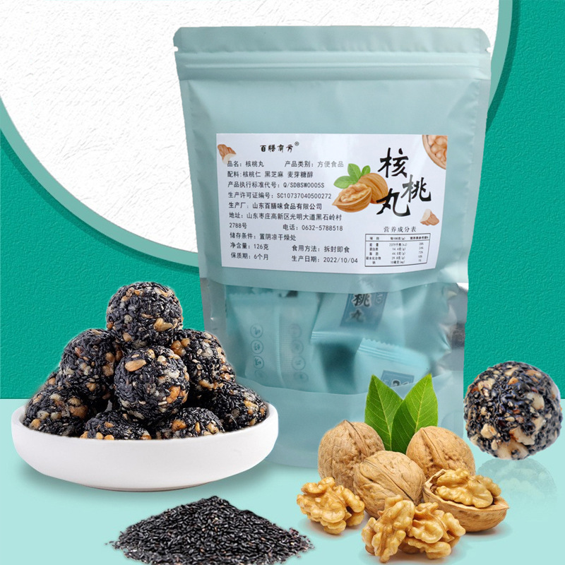 黑芝麻核桃丸袋装批发126g网红食品源头厂家一件代发传统手工制作