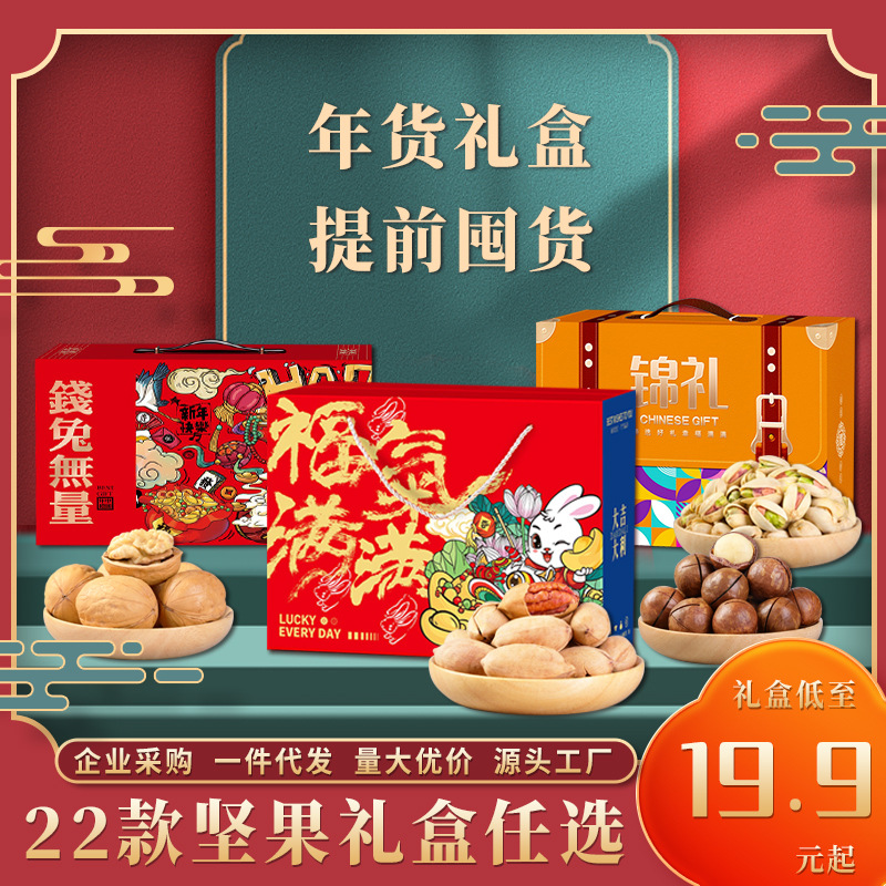 坚果礼盒年货批发混合坚果组合炒货干果开心果夏威夷果零食大礼包