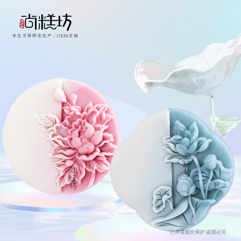 月饼定制幻彩流心月饼批发中秋节月饼网红月饼双色月饼桃山皮月饼