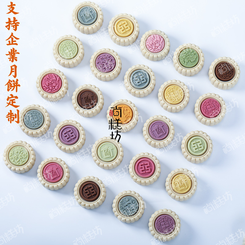 中秋月饼桃山皮月饼渐变色月饼流心月饼批发中秋员工福利月饼单个