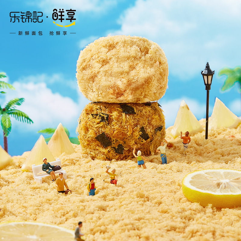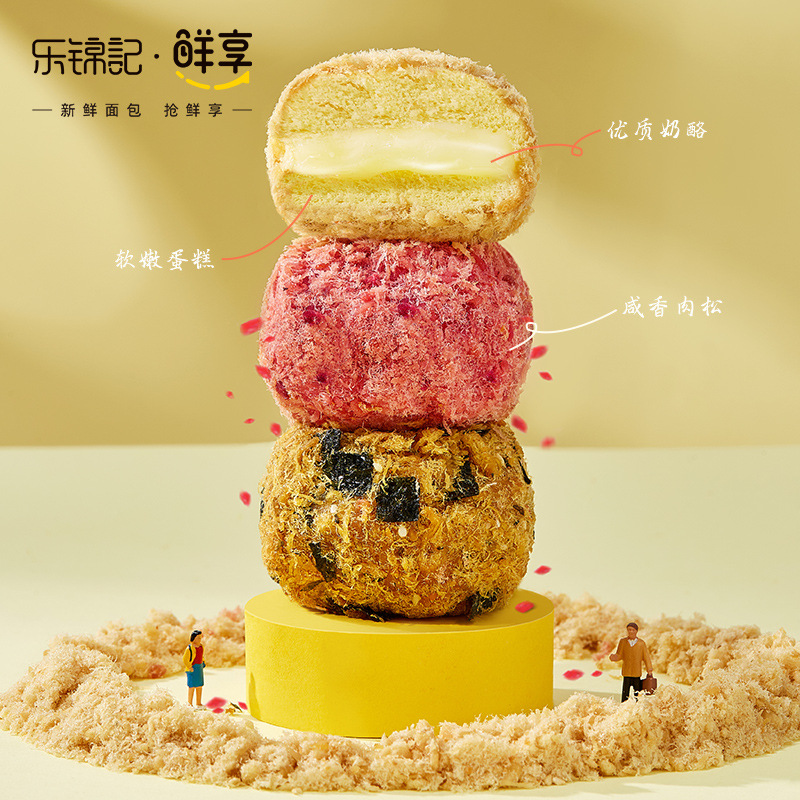 乐锦记鲜享海苔肉松鲜贝柠檬酸奶网红爆浆面包蛋糕点心休闲零食