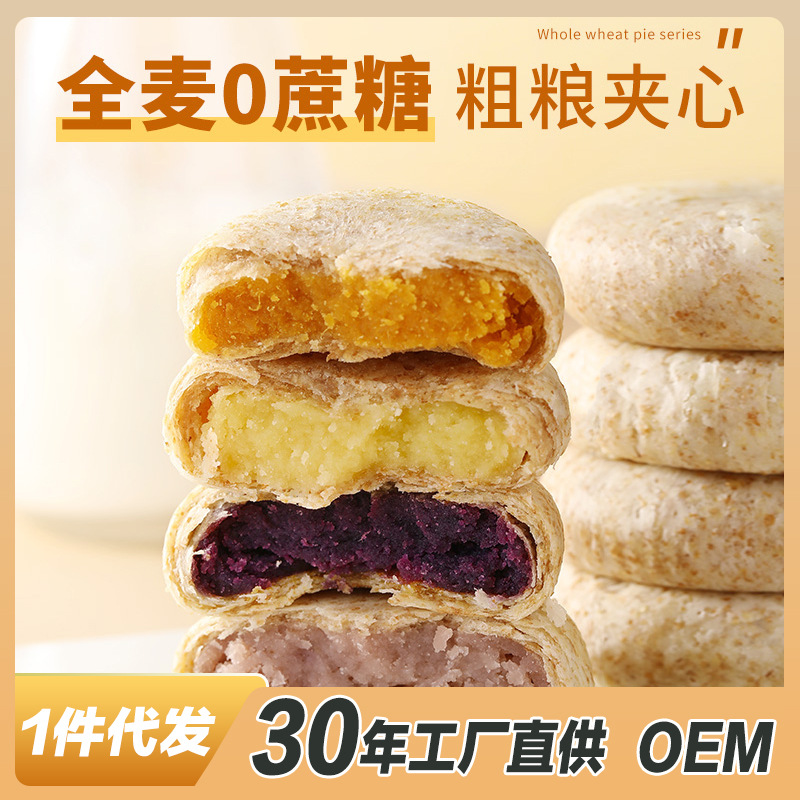 全麦馅饼全麦紫薯芋泥全麦绿豆全麦南瓜饼无蔗糖粗粮代餐散装批发