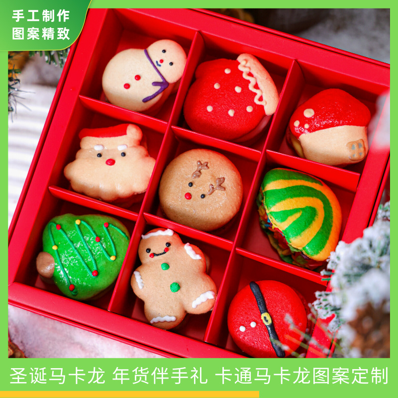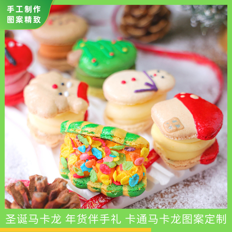 年货企业定制版手绘马卡龙新年伴手礼圣诞卡通图案马卡龙新年礼盒