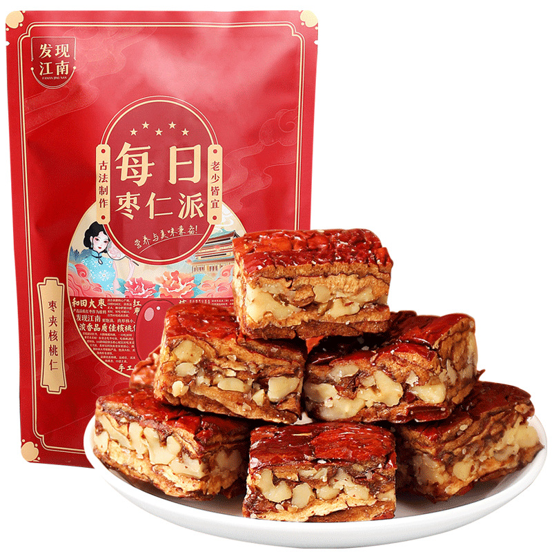 新疆特产坚果枣仁派真空独立包装红枣核桃夹仁零食 厂家批发代发