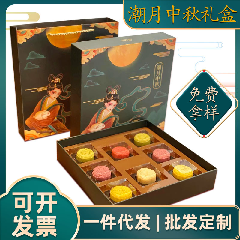 潮月中秋礼盒 手提月饼精品礼盒套装 5种口味月饼 8个装 厂家直销