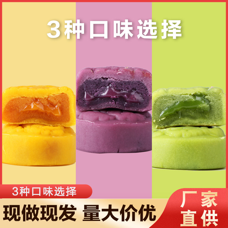 源头厂家现做现发中秋礼品多口味酥香休闲下午茶桃山皮流心月饼