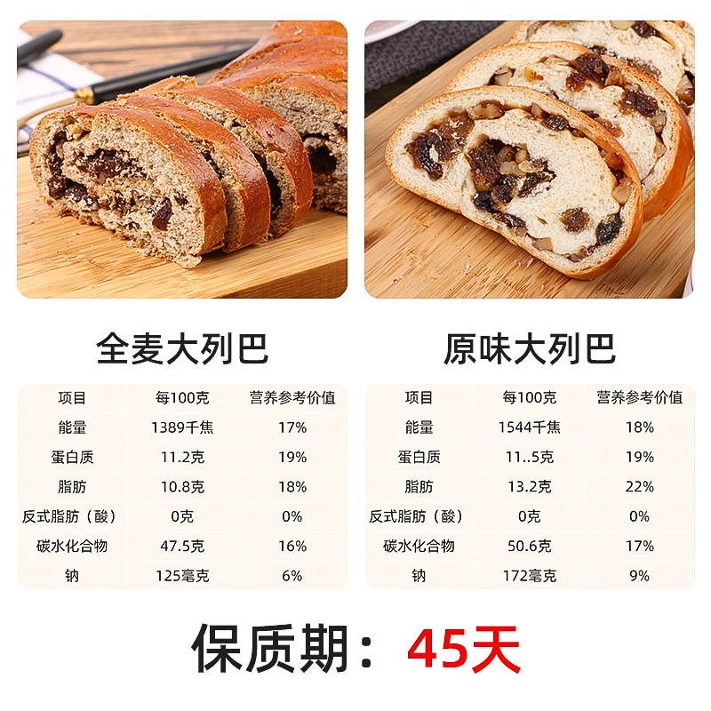 俄罗斯大列巴面包 核桃仁葡萄干 抗饿全麦坚果大列巴面包400g代发