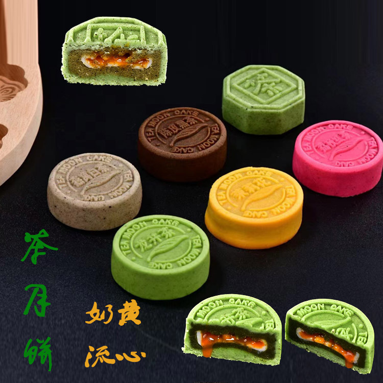 中秋茶月饼广式桃山皮流心月饼陈皮黑茶龙井茶月饼礼盒装月饼批发