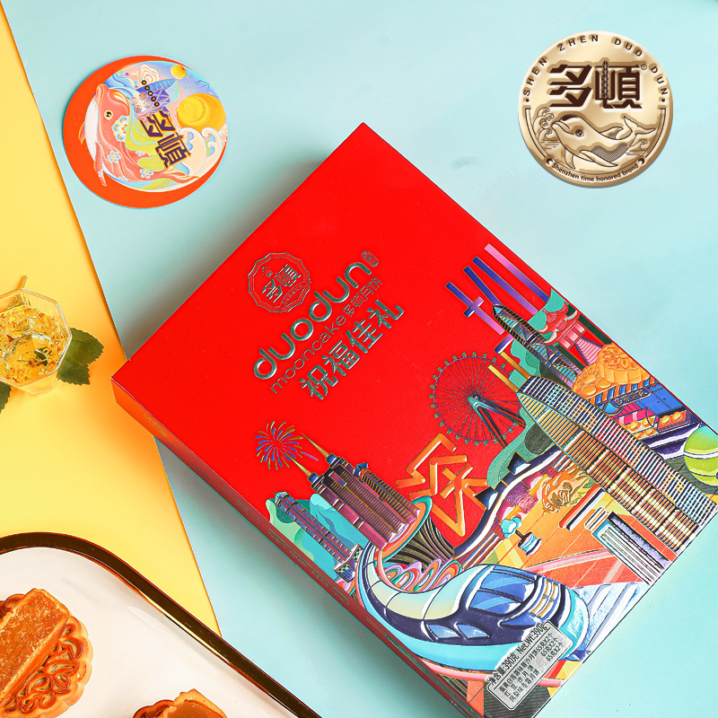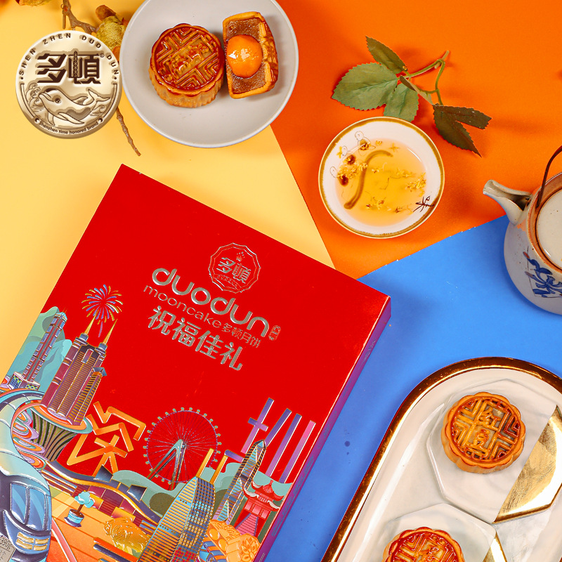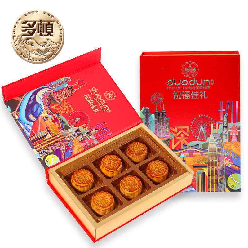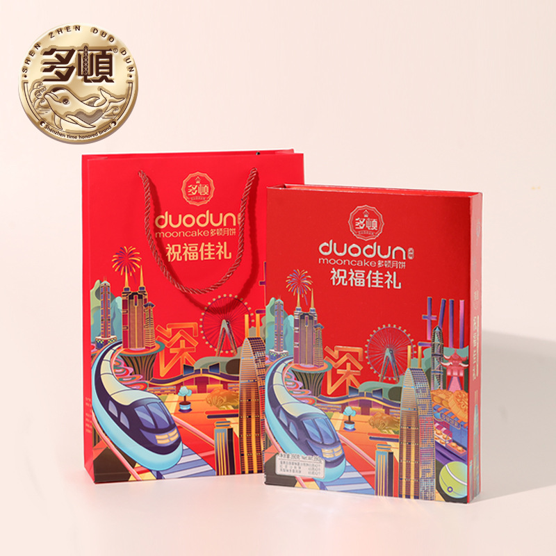 多顿食品四个装圳幸福月饼手提盒装果仁红豆沙蛋黄莲蓉月饼批发