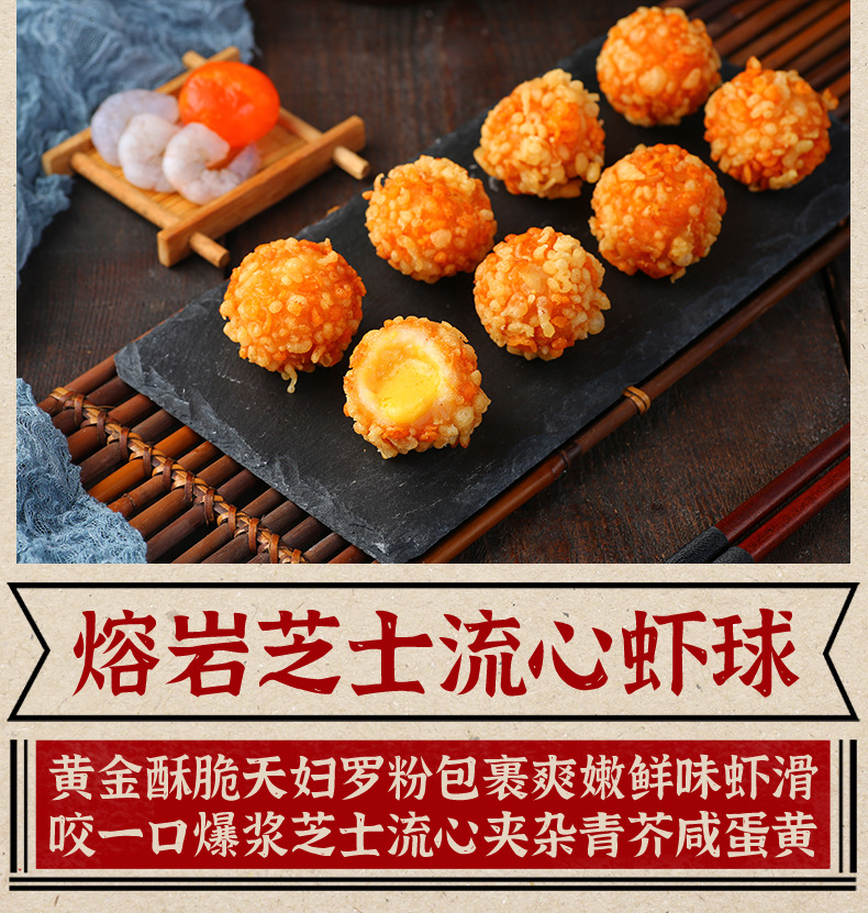 阿诺 熔岩虾球爆浆咸蛋黄芝士球油炸流心球速冻小吃商用冷冻外仓