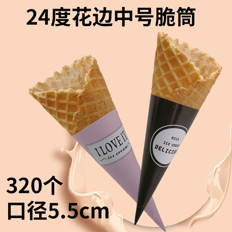 24度中号冰激凌蛋筒320个花边脆筒甜筒脆皮华夫筒蛋卷蛋托蛋筒