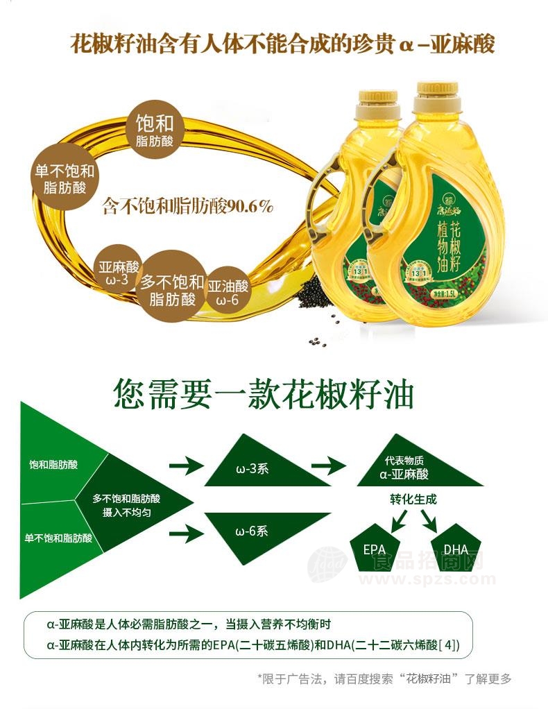 1、康滋福花椒籽油含亚麻酸籽油1.5L诚招代理加盟招商经销商必须有经营销售能力。