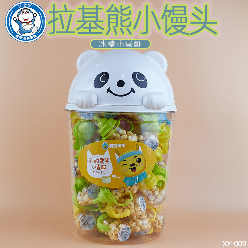 厂家直销蛋黄小蛋酥小馒头膨化小零食原味山楂粒满60瓶送拉基熊桶