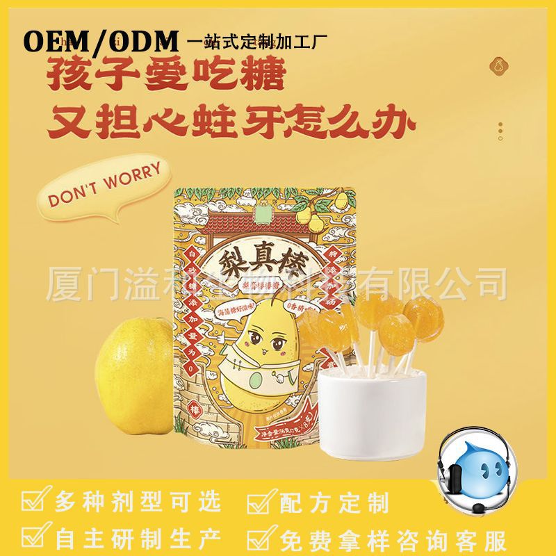 源头工厂维c梨膏糖秋梨棒棒糖批发直播网红雪梨硬质糖果代加工