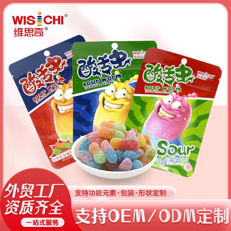 维思奇 定制酸毛毛虫五彩软糖维C软糖酸砂橡皮糖贴牌软糖零食代工