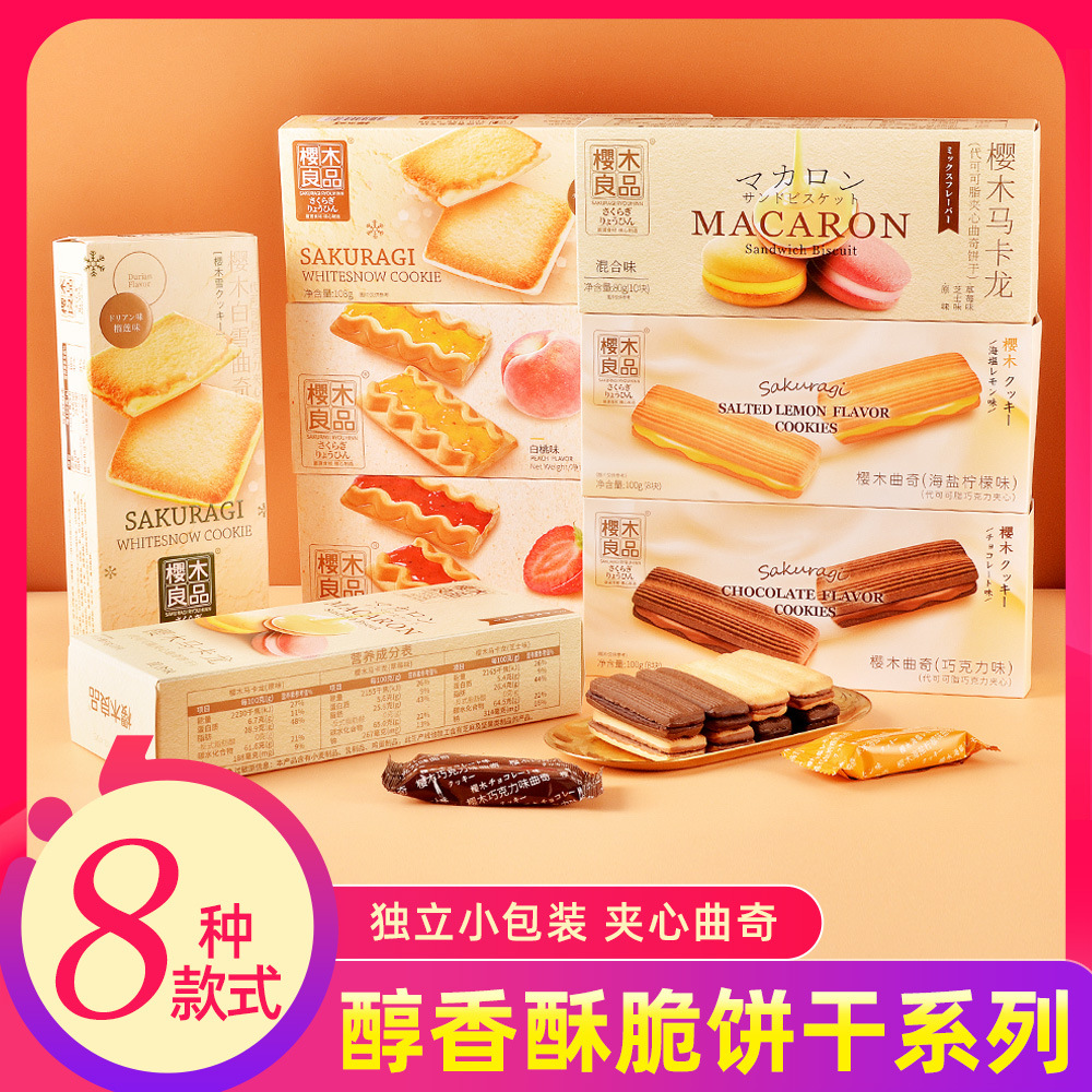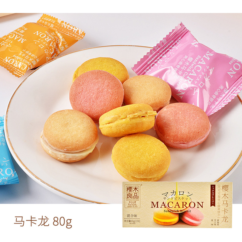 樱木良品马卡龙曲奇饼干白巧克力草莓果酱夹心榴莲情人节礼物年货