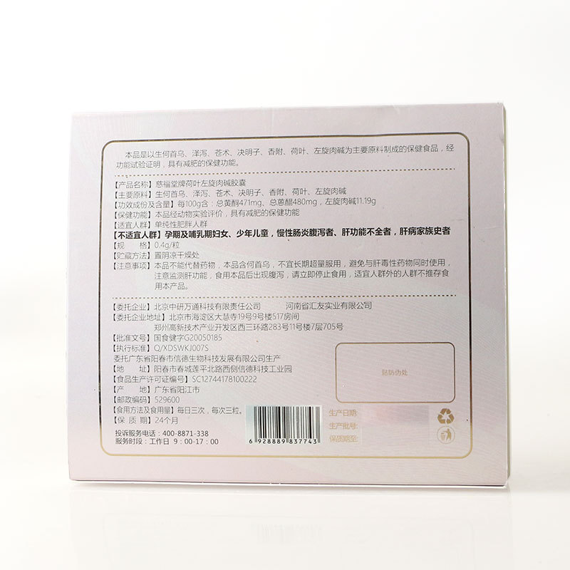 厂家蓝帽减肥胶囊 慈福堂荷叶左旋肉碱胶囊 燃脂断糖现货量大咨询