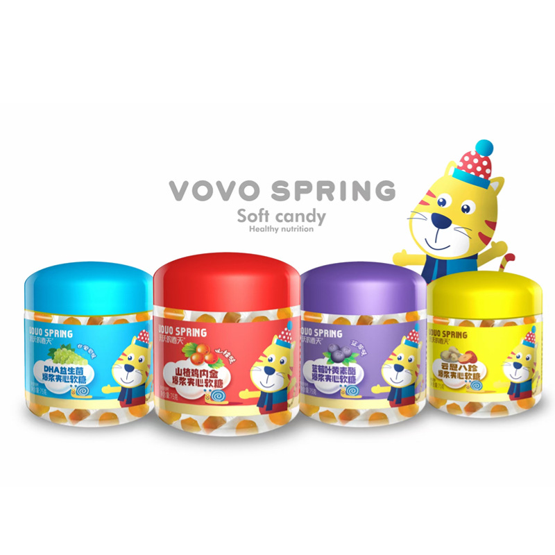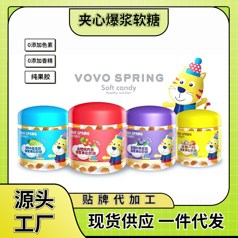 夹心爆浆果汁软糖纯果胶健康零食蓝莓叶黄素山楂鸡内金DHA益生菌