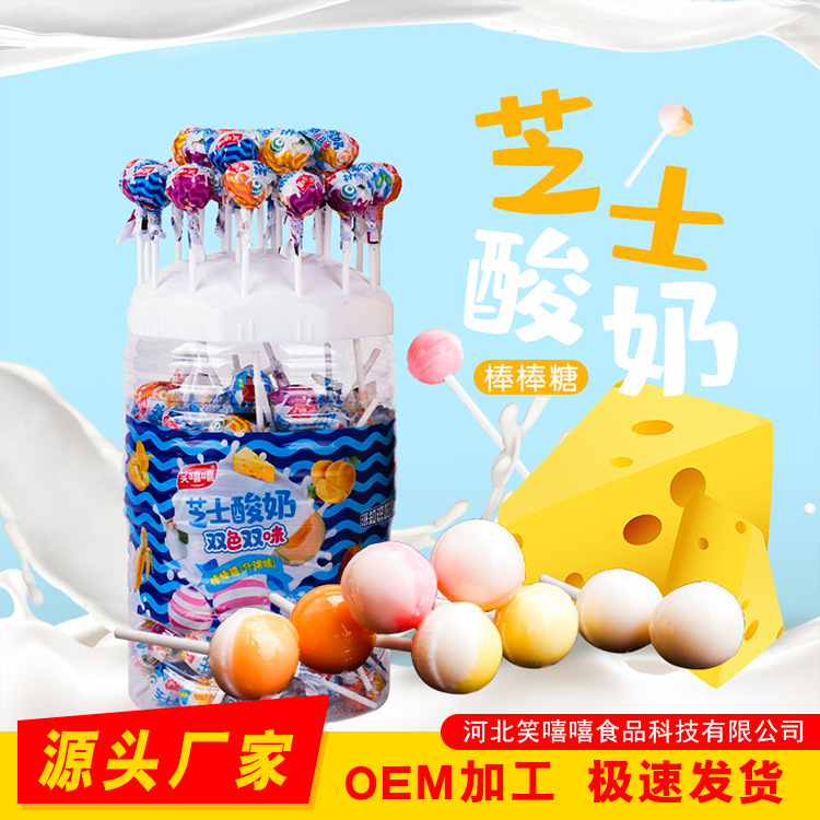 OEM定制奶茶口味棒棒糖 100支创意儿童零食锡纸包装夹心棒棒糖