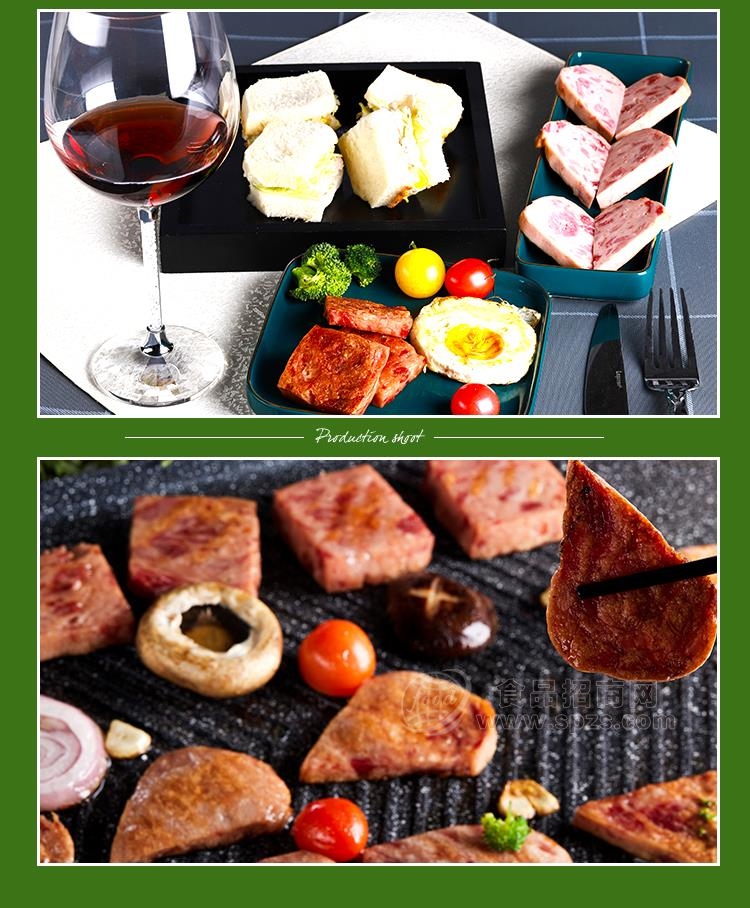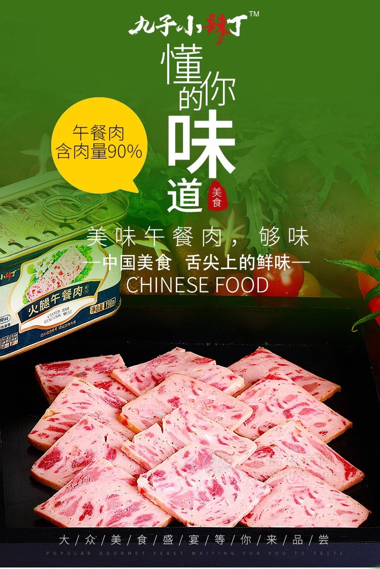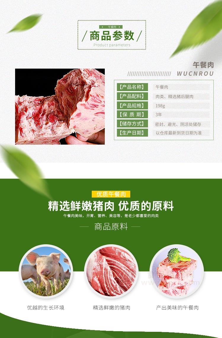 1、午餐肉,大块瘦肉粒,另有礼盒产品招商经销商必须有经营销售能力。