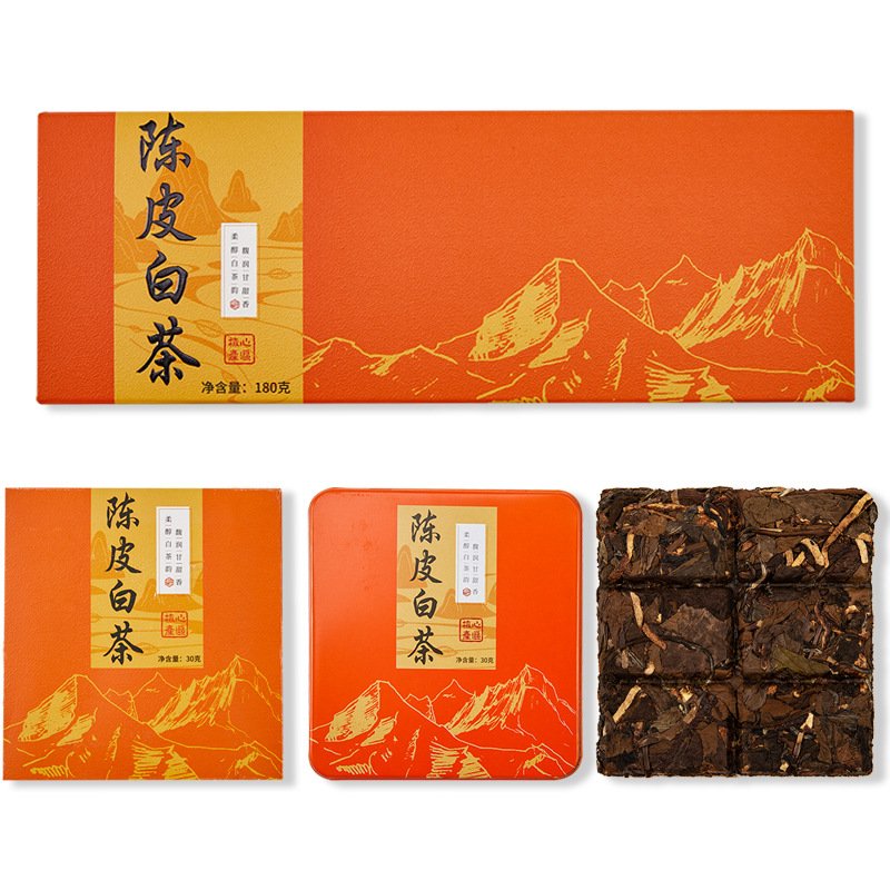 陈皮白茶福鼎老白茶寿眉小方片小饼干茶饼茶叶白茶批发礼盒装