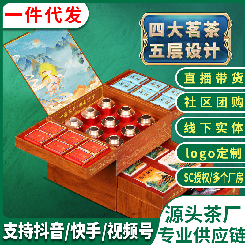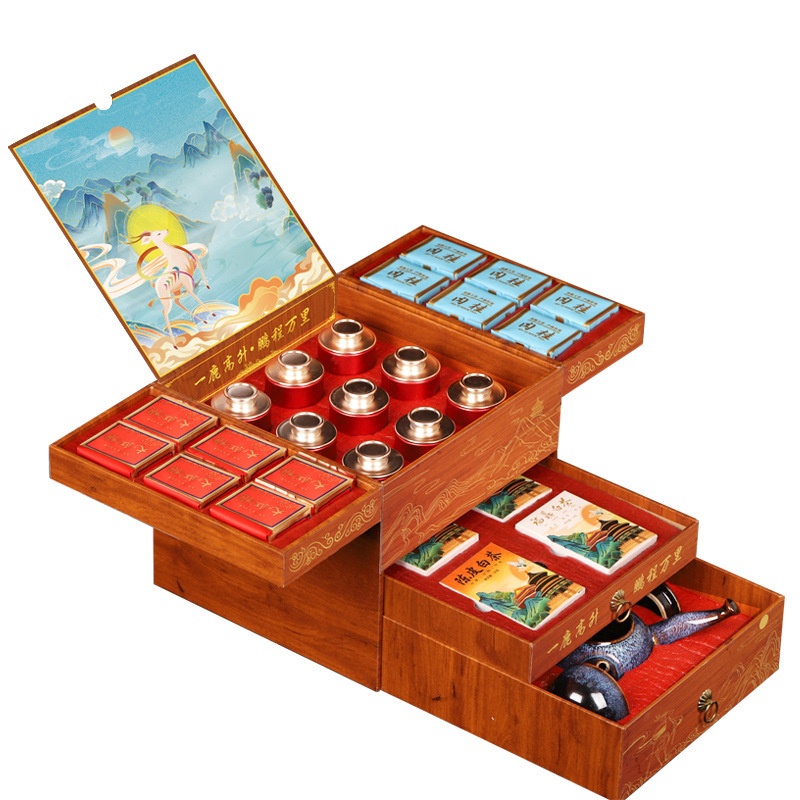 一鹿高升五层大红袍茶叶小罐岩茶肉桂礼盒装福鼎陈皮老白茶批发