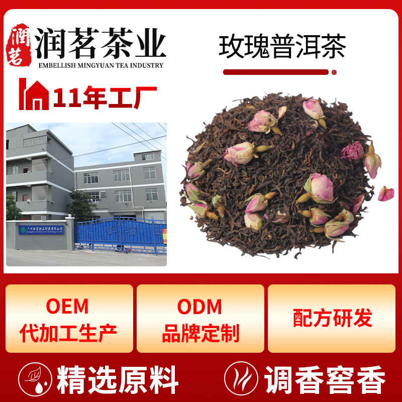 润茗玫瑰普洱茶菊花玫瑰花茶oem代加工 桂花陈皮普洱红糖姜茶定制