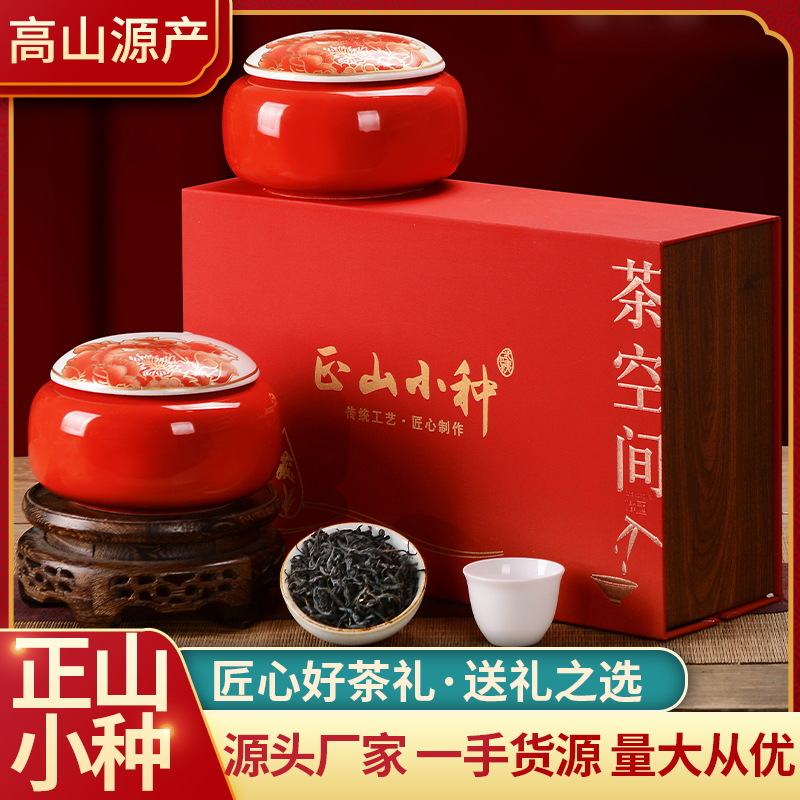 中秋茶叶礼盒定制武夷山正山小种高档陶瓷罐红茶茶叶批发厂家直销