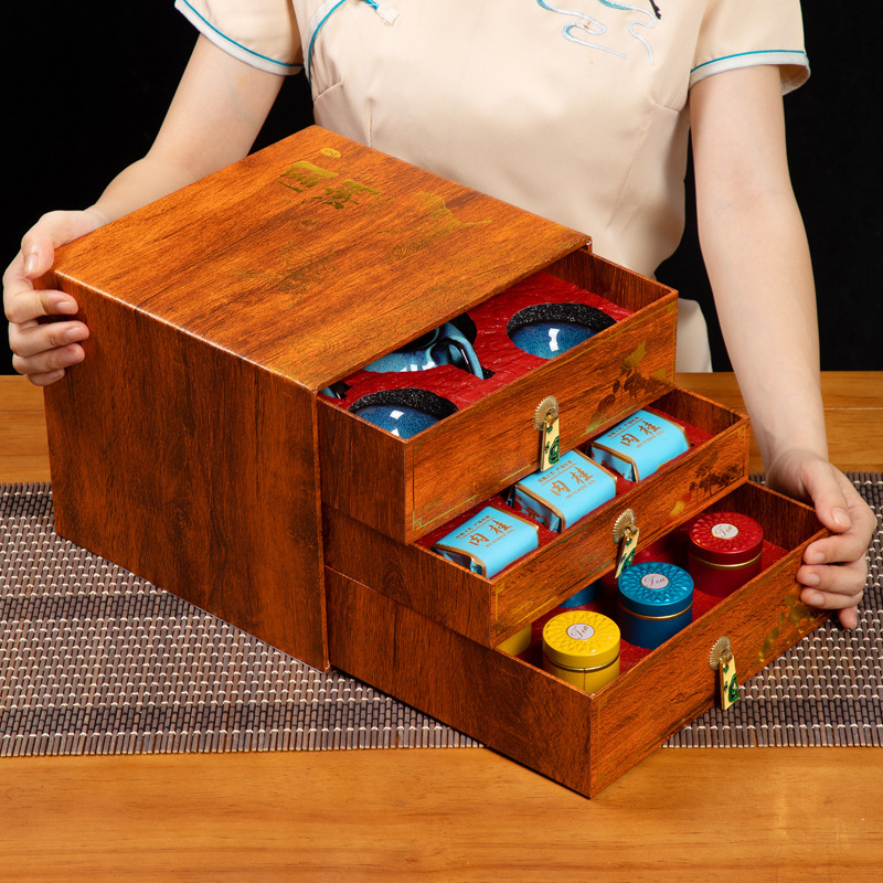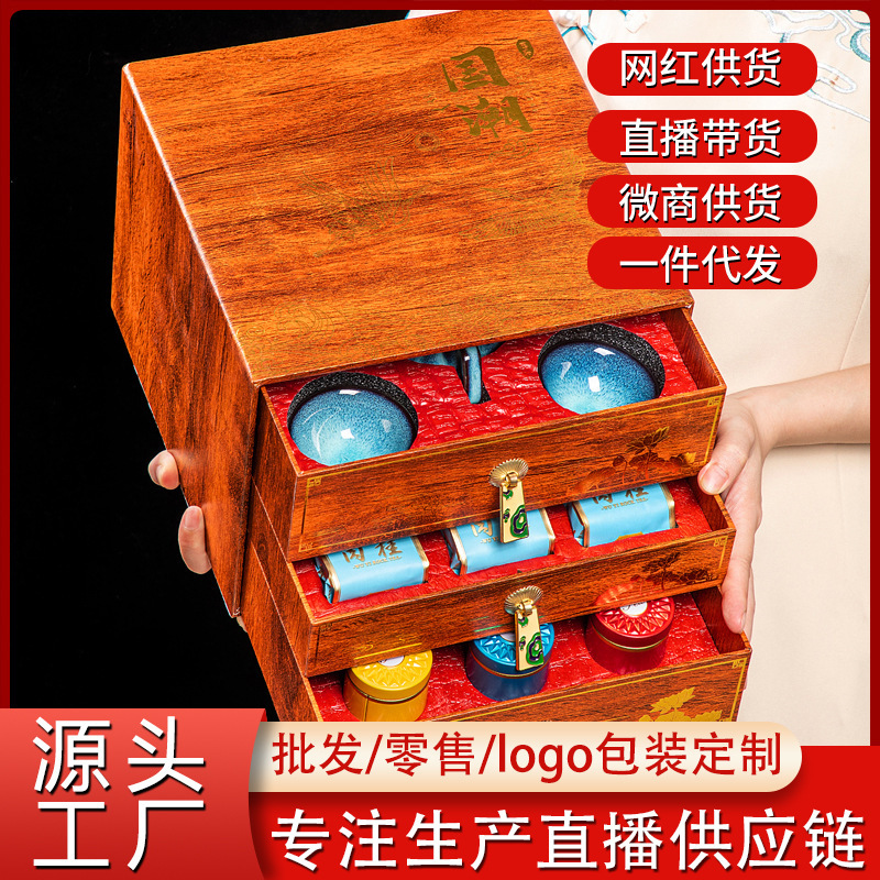 一鹿高升五层大红袍茶叶小罐岩茶肉桂礼盒装福鼎陈皮老白茶批发