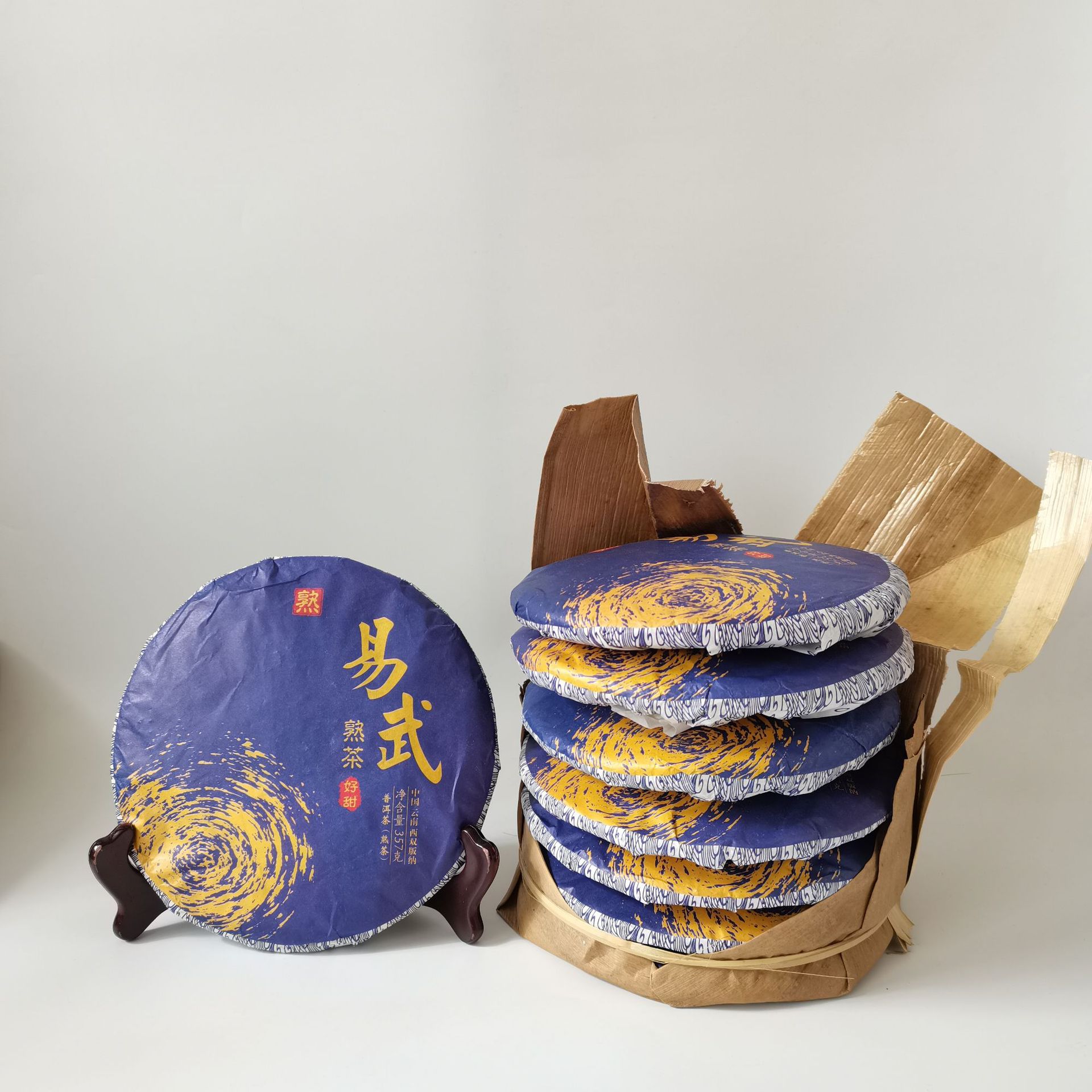 厂家加工定制云南普洱茶 易武七子饼熟茶2013年老料357克熟普洱茶